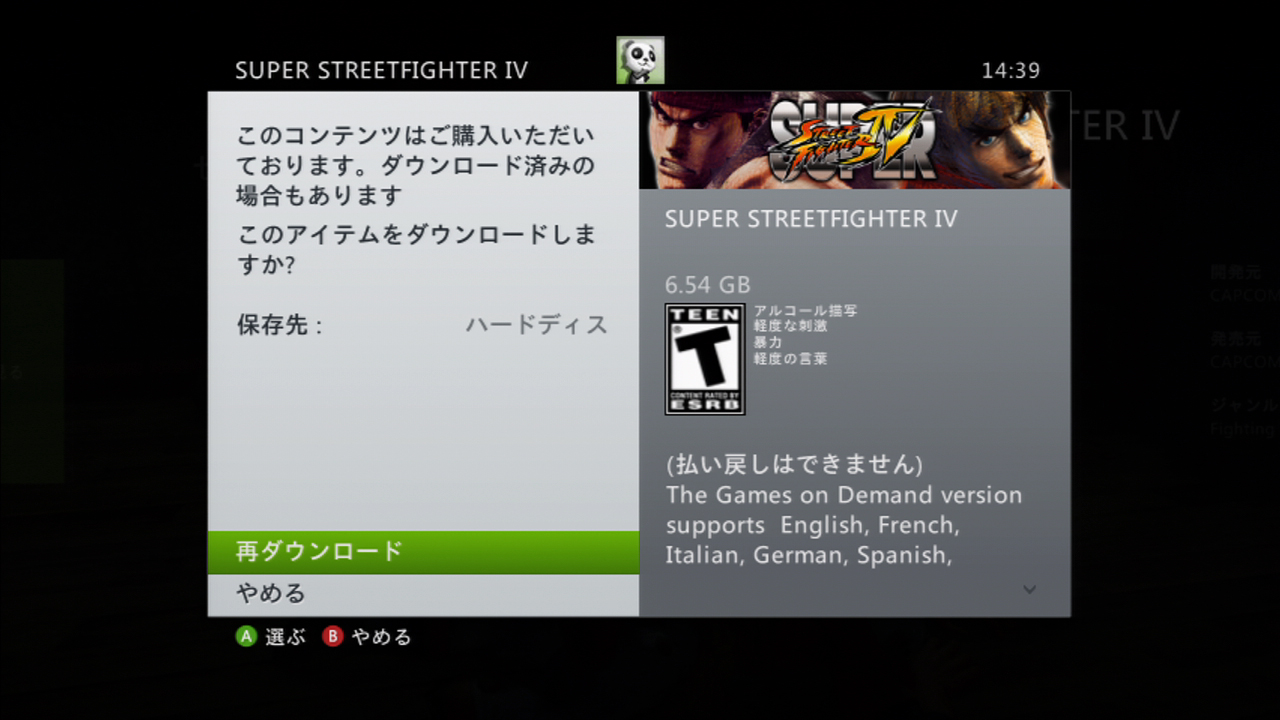 VPN接続を使った 北米ゲームオンデマンド版 スーパーストリートファイターIV の購入Xbox3602011.5.22