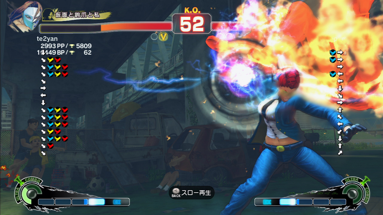 見えない起き攻めからウルコンで一気に体力を奪われます。